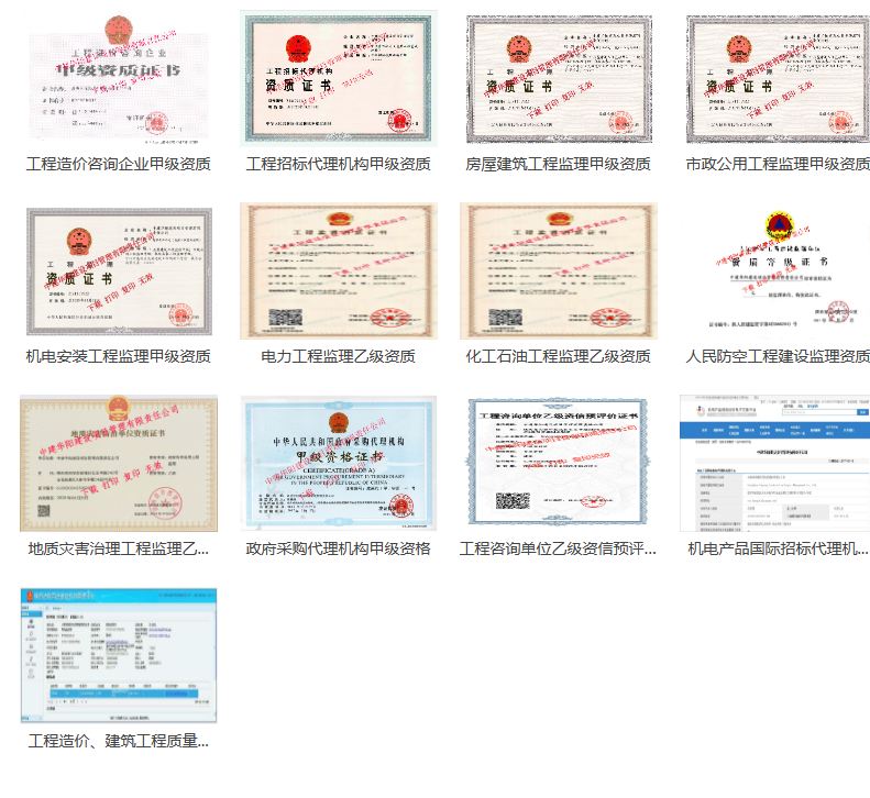 自公司成立后,相繼獲得了工程造價、招標(biāo)代理、房建、市政公用工程監(jiān)理等16項資質(zhì)資格。